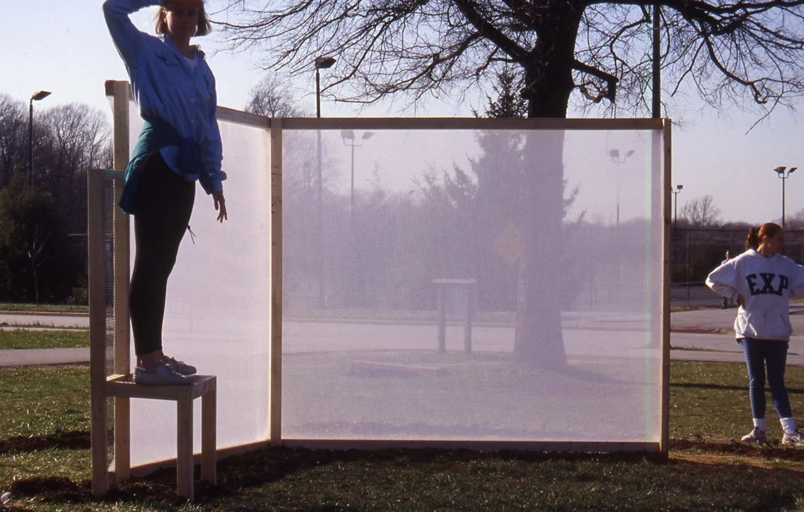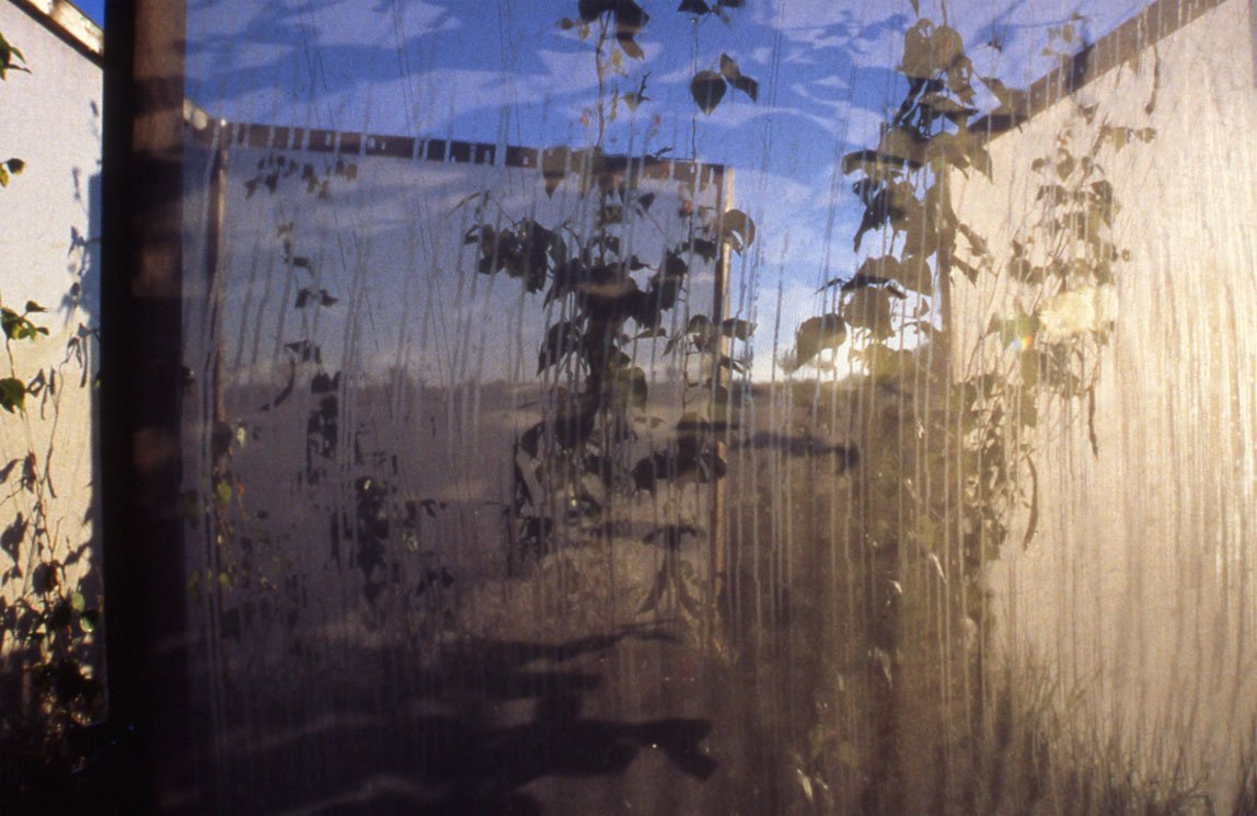 Each site served as a point of interaction, marked by ephemeral installations that incorporated scrim structures and performative actions. Throughout the three-month summer duration, I collaborated with local performers who activated the sites through movement and gesture, as well as with participants who planted vegetable and flower gardens. As the season advanced, the growing plants became intertwined with the installations, altering the work in response to time and weather.