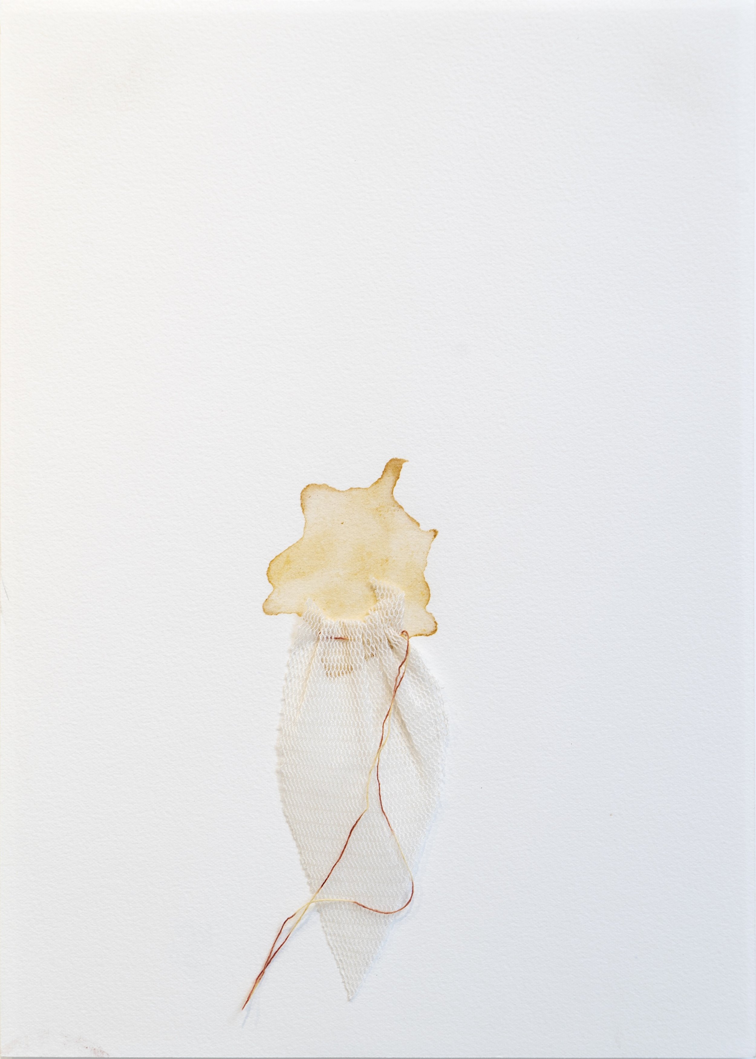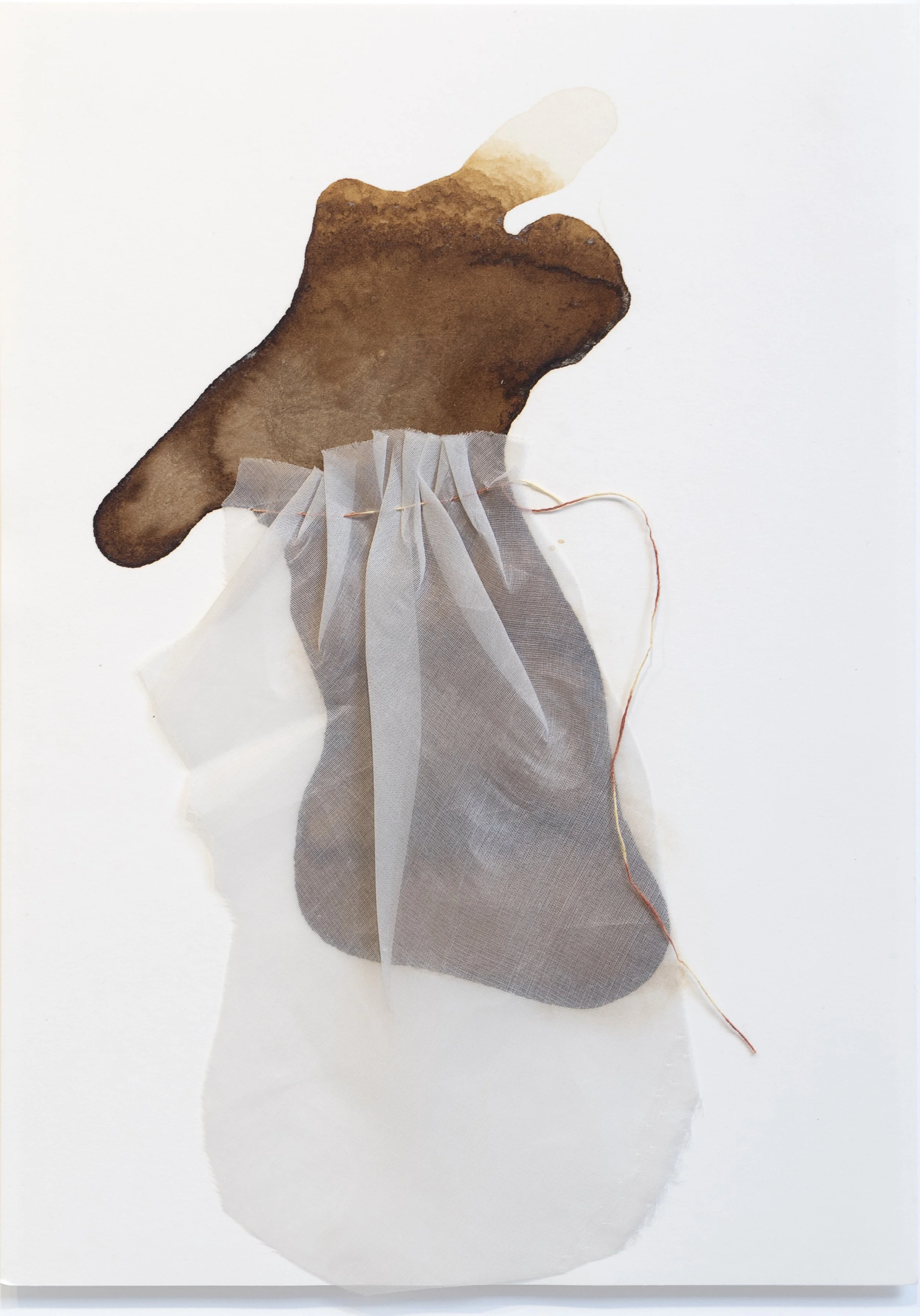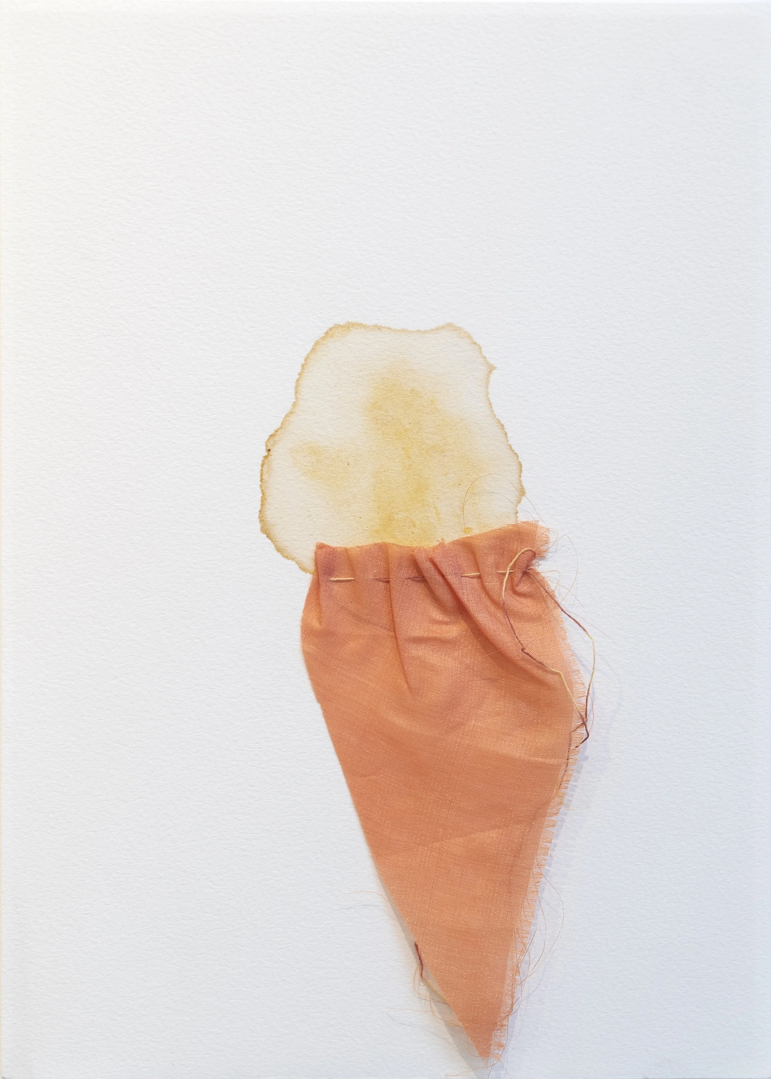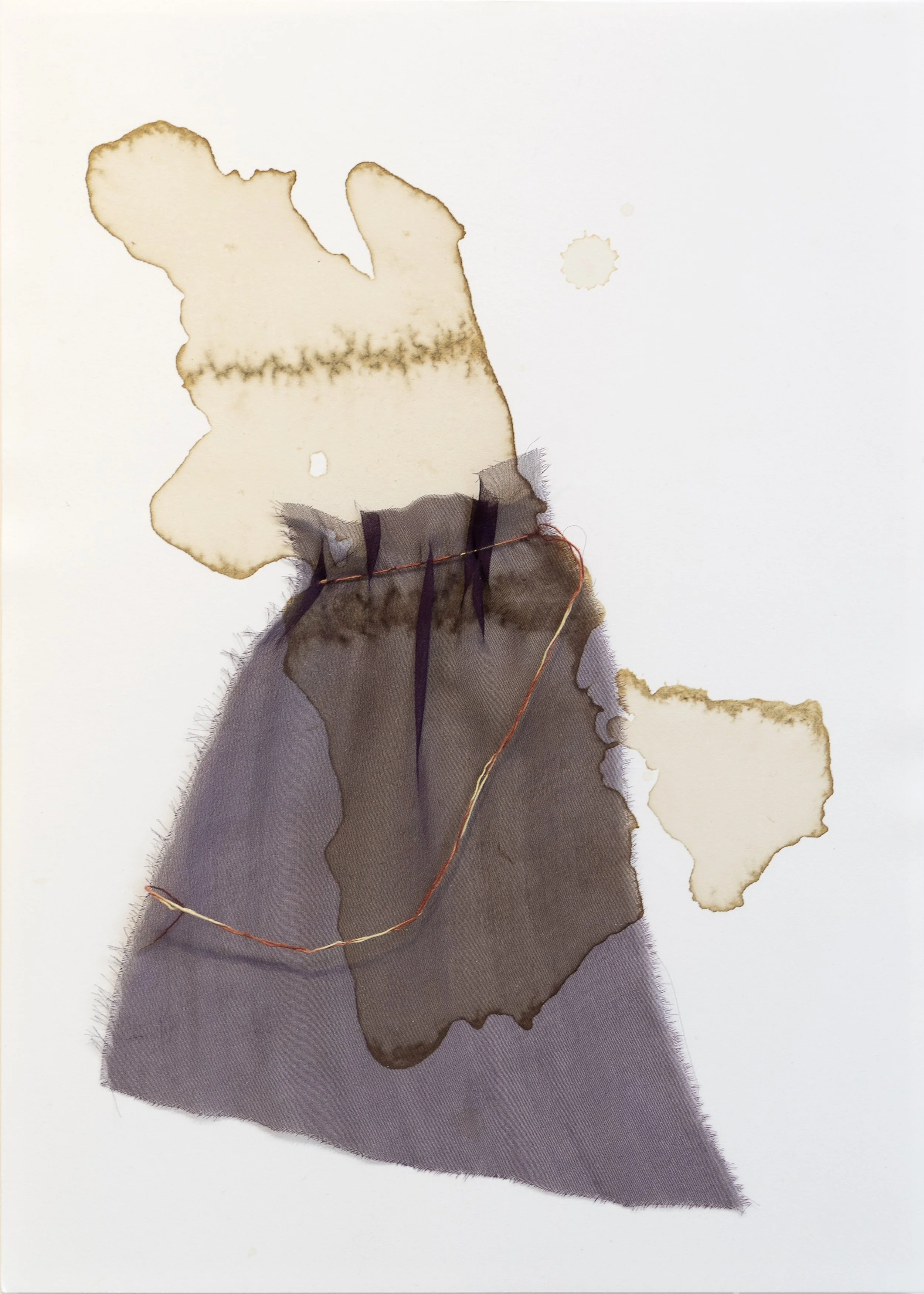 Months later, back in my studio, I hand-sew small pieces of silk onto each sheet as a gesture of protection—an act of care rather than repair. The works hold traces of exchange—offering and return, devotion and response—without representation. They remain quiet records of a process shaped by walking, place, time, and transformation.