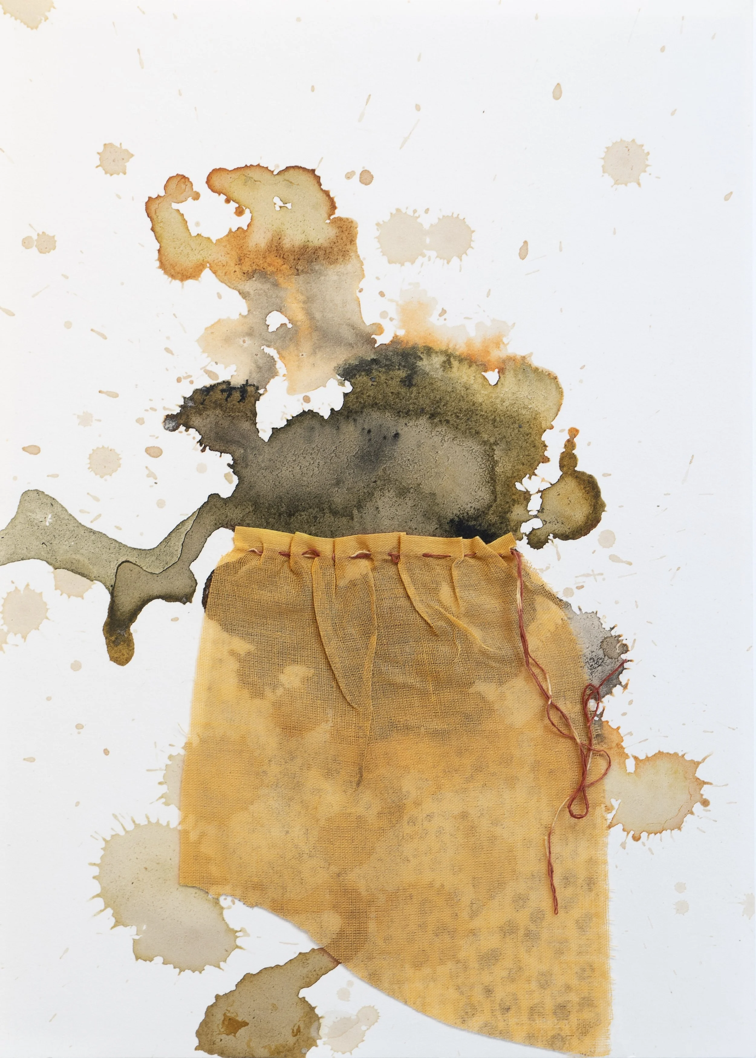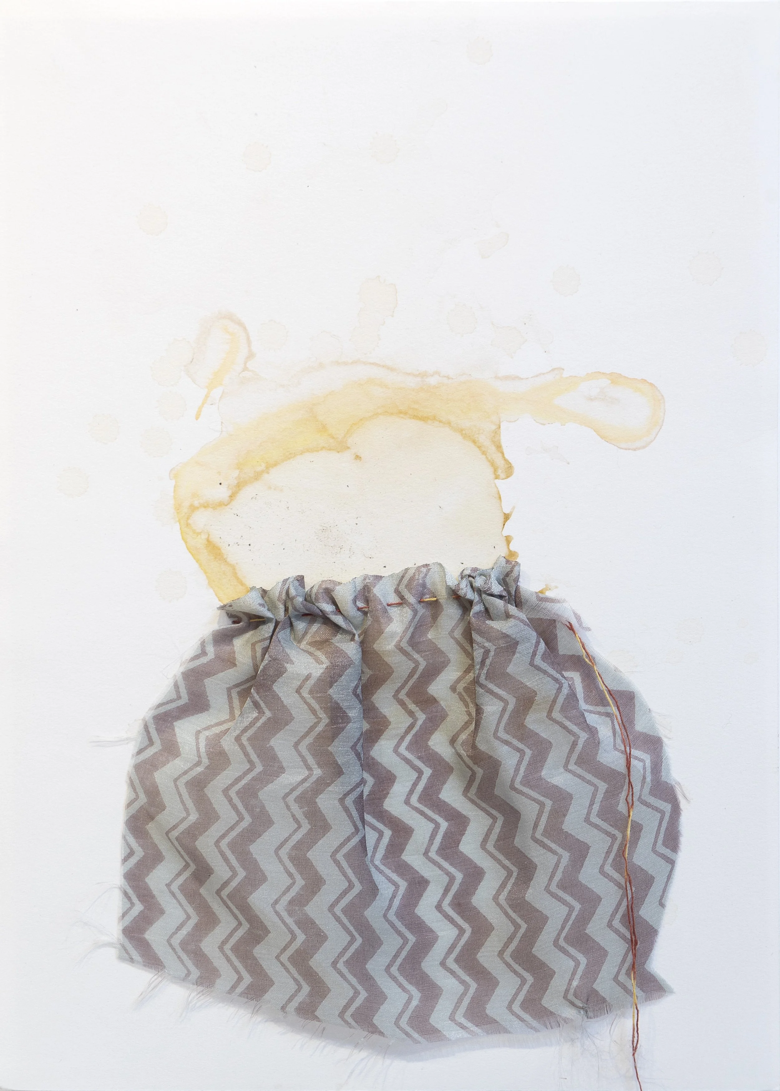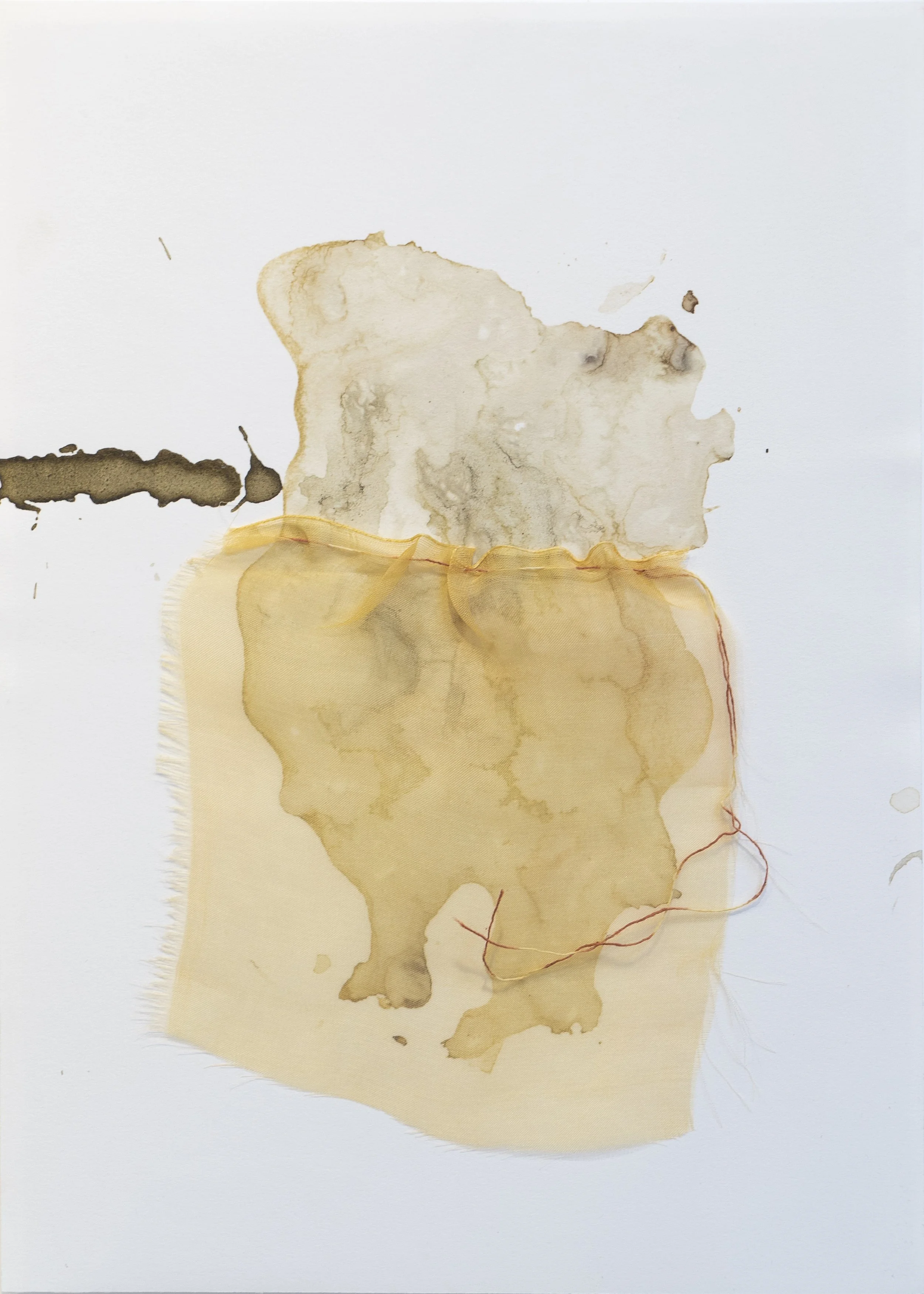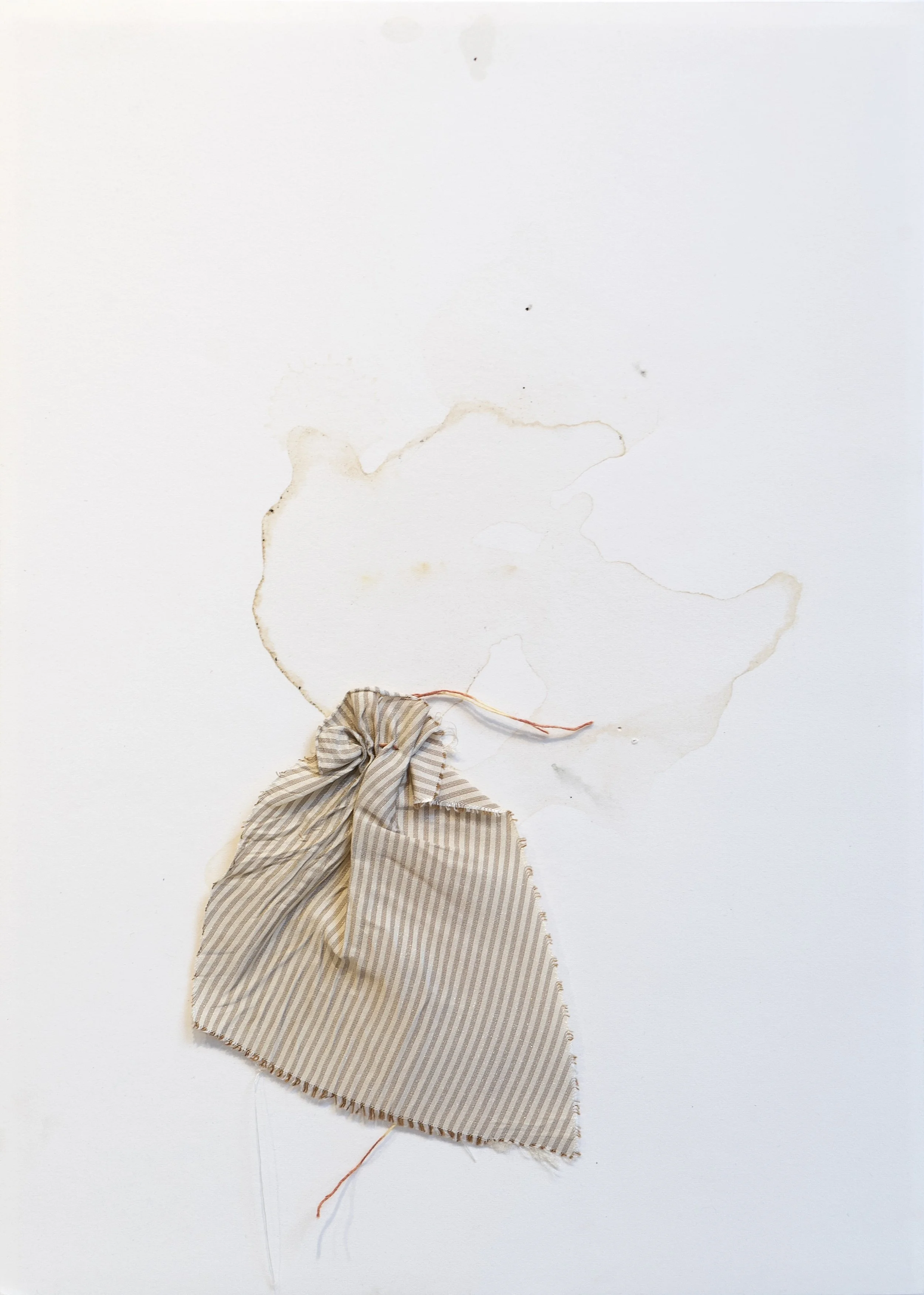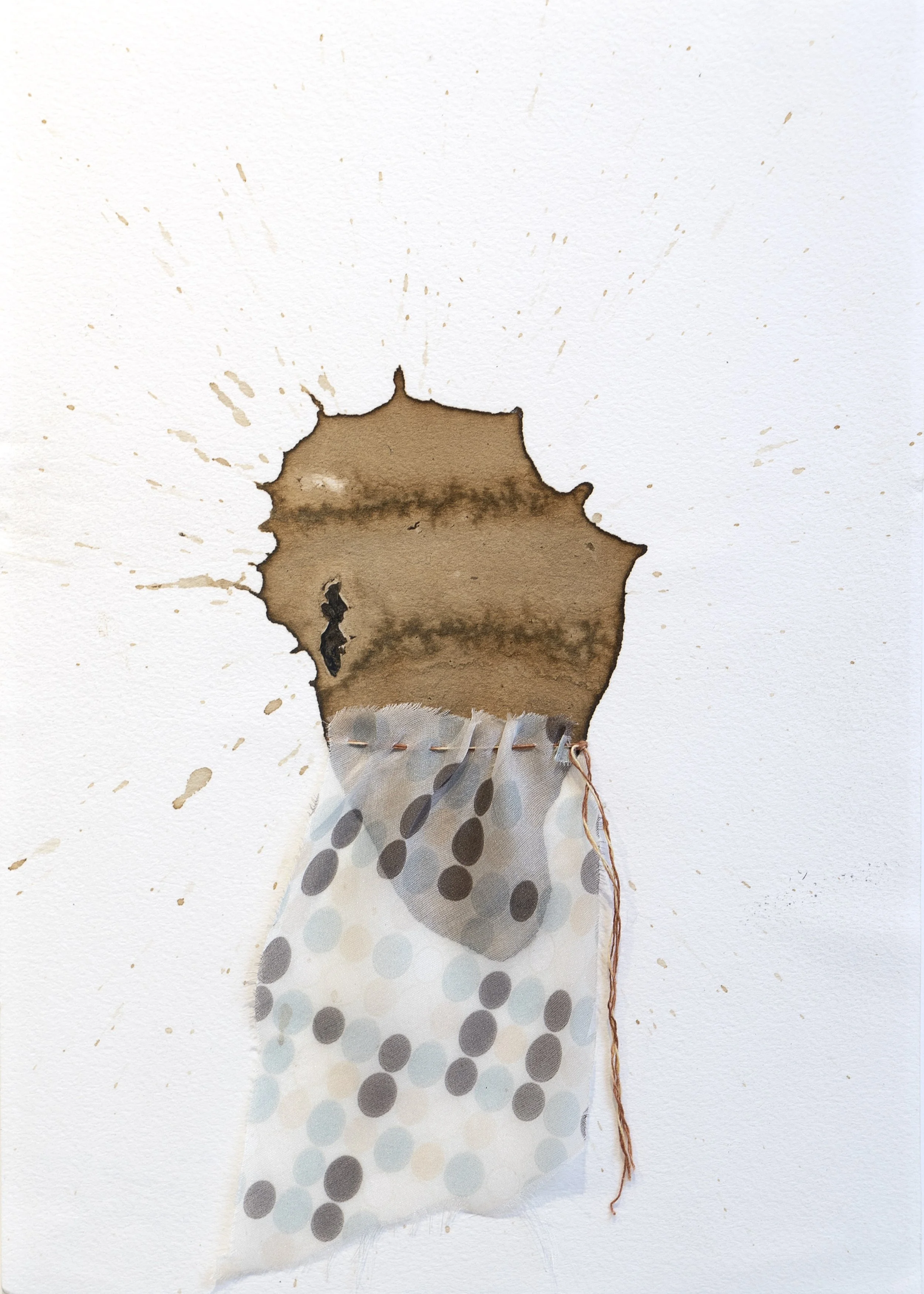 Months later, back in my studio, I hand-sew small pieces of silk onto each sheet as a gesture of protection—an act of care rather than repair. The works hold traces of exchange—offering and return, devotion and response—without representation. They remain quiet records of a process shaped by walking, place, time, and transformation.